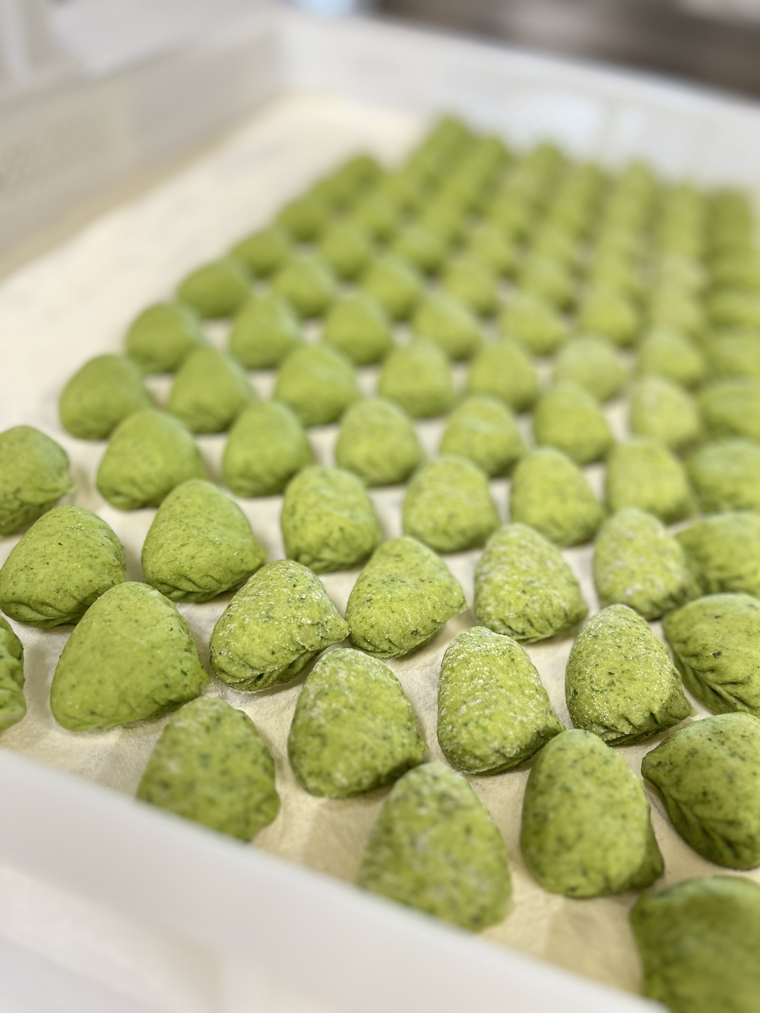 Una sfoglia di semola, spinaci e olio e.v.o. racchiude un cuore di patate e trifolati di carciofi, porcini o asparagi, tutti ingredienti di origine naturale!