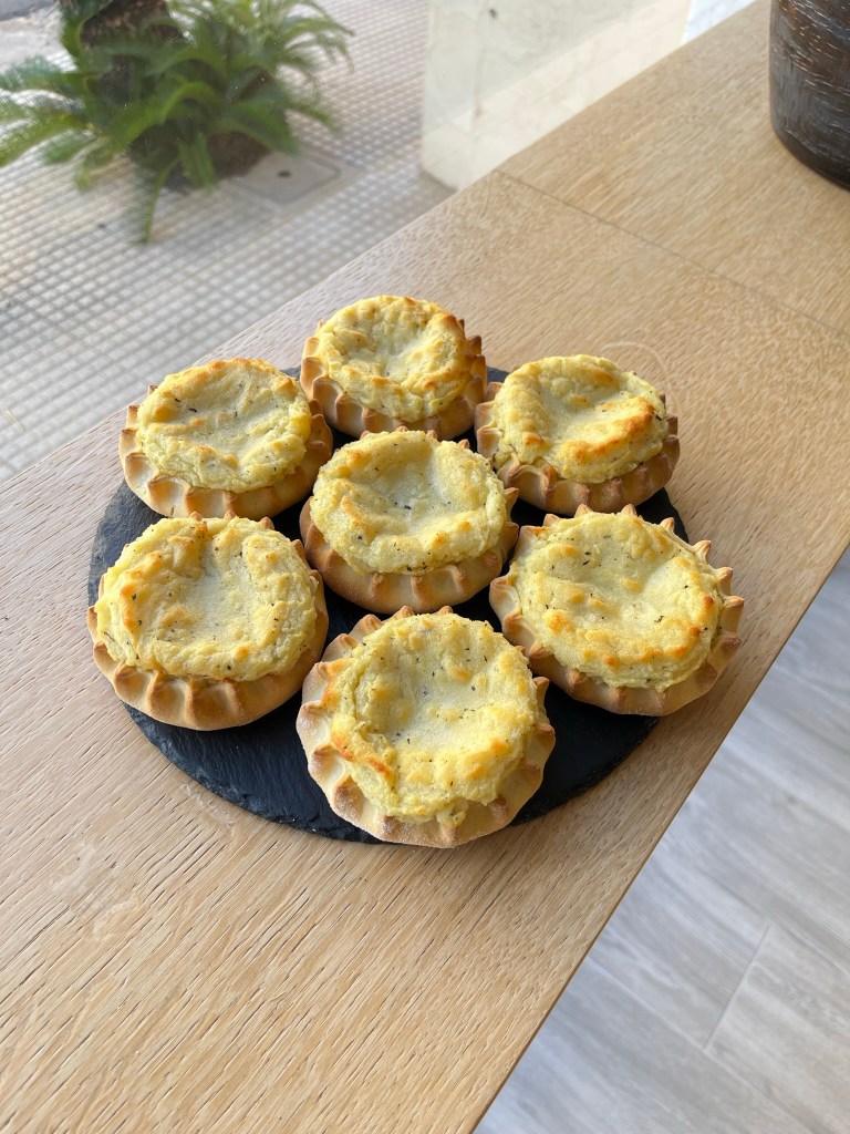 Una sfoglia di pane racchiude un cuore di patate, formaggio, menta e aglio, un’esplosione di sapore intenso e gustoso.