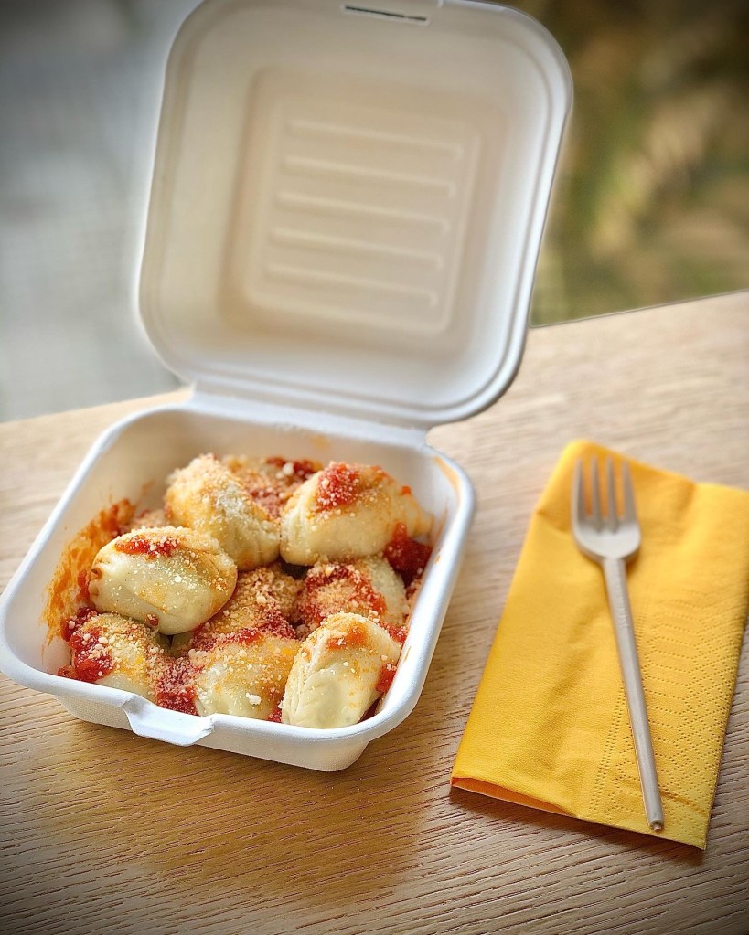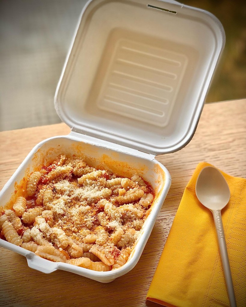 La comodità di ritirare in negozio il tuo piatto pronto da assaporare dove vuoi tu, con porzione da asporto e posate.